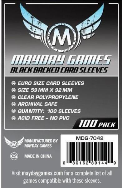 Mayday games Euro méretű kártyavédő (100 db-os csomag) 59 mm x 92 mm, fekete hátlap (MDG-7042) - tarsasjatekmania